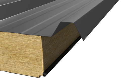Толщина кровельных сэндвич-панелей варьируется от 50 до 300 мм, что позволяет выбрать оптимальное решение под регион эксплуатации и особенности объекта. Утеплитель из минеральной ваты обеспечивает надёжную тепло- и звукоизоляцию, а жесткие внешние оцинкованные металлические листы с антикоррозийным полимерным покрытием устойчивы к влаге, ультрафиолету и механическим повреждениям. Специальный профиль верхнего листа формирует дополнительное ребро жёсткости и улучшает водоотвод, препятствуя застою осадков на крыше.