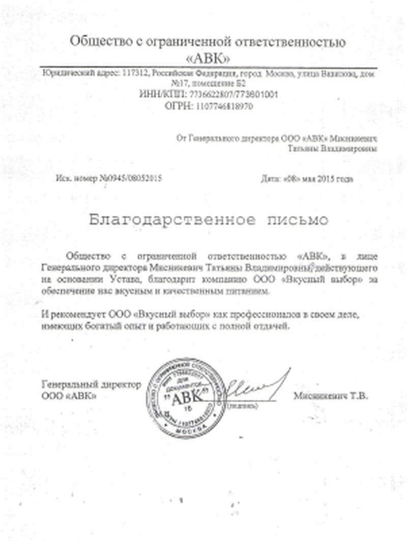 Благодарственные письма
